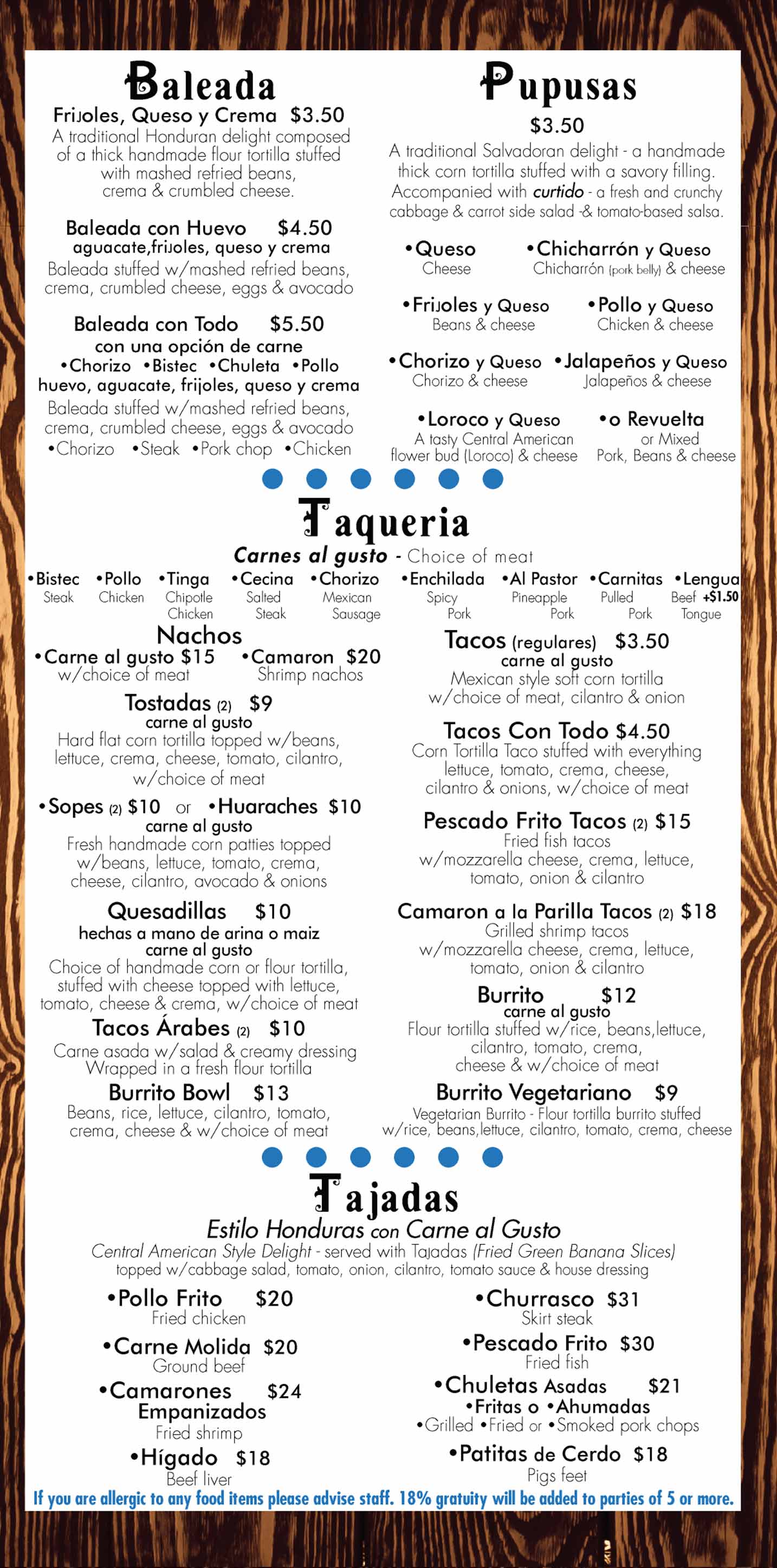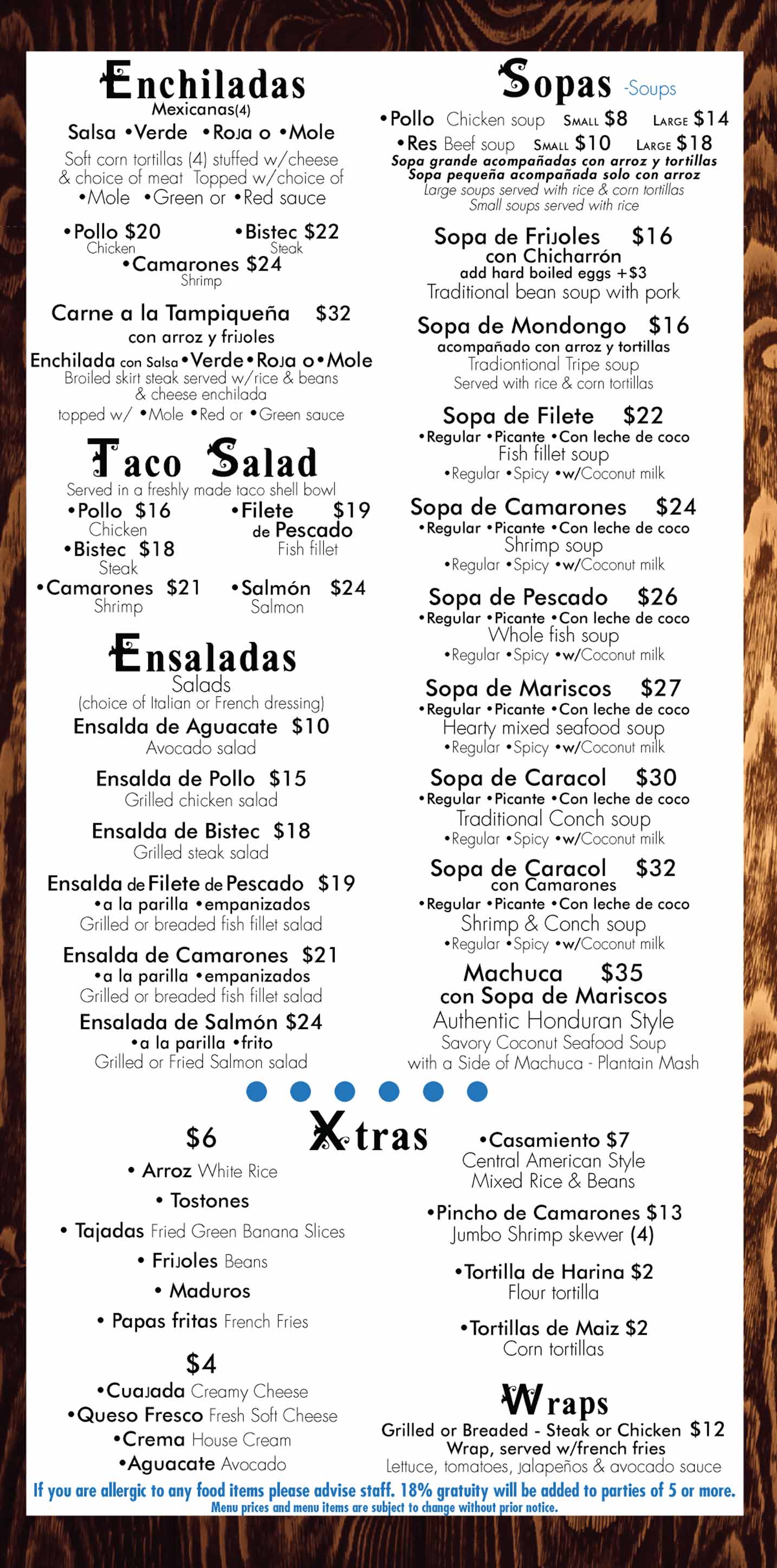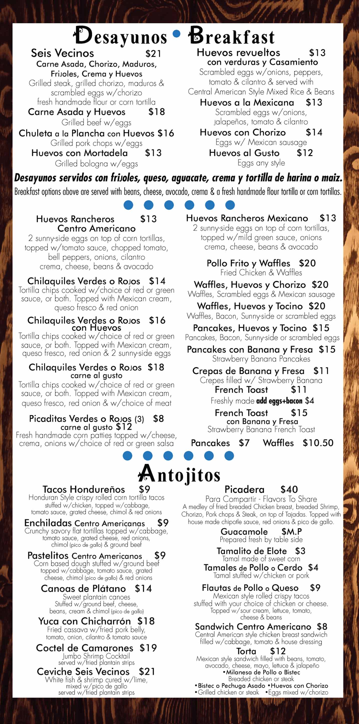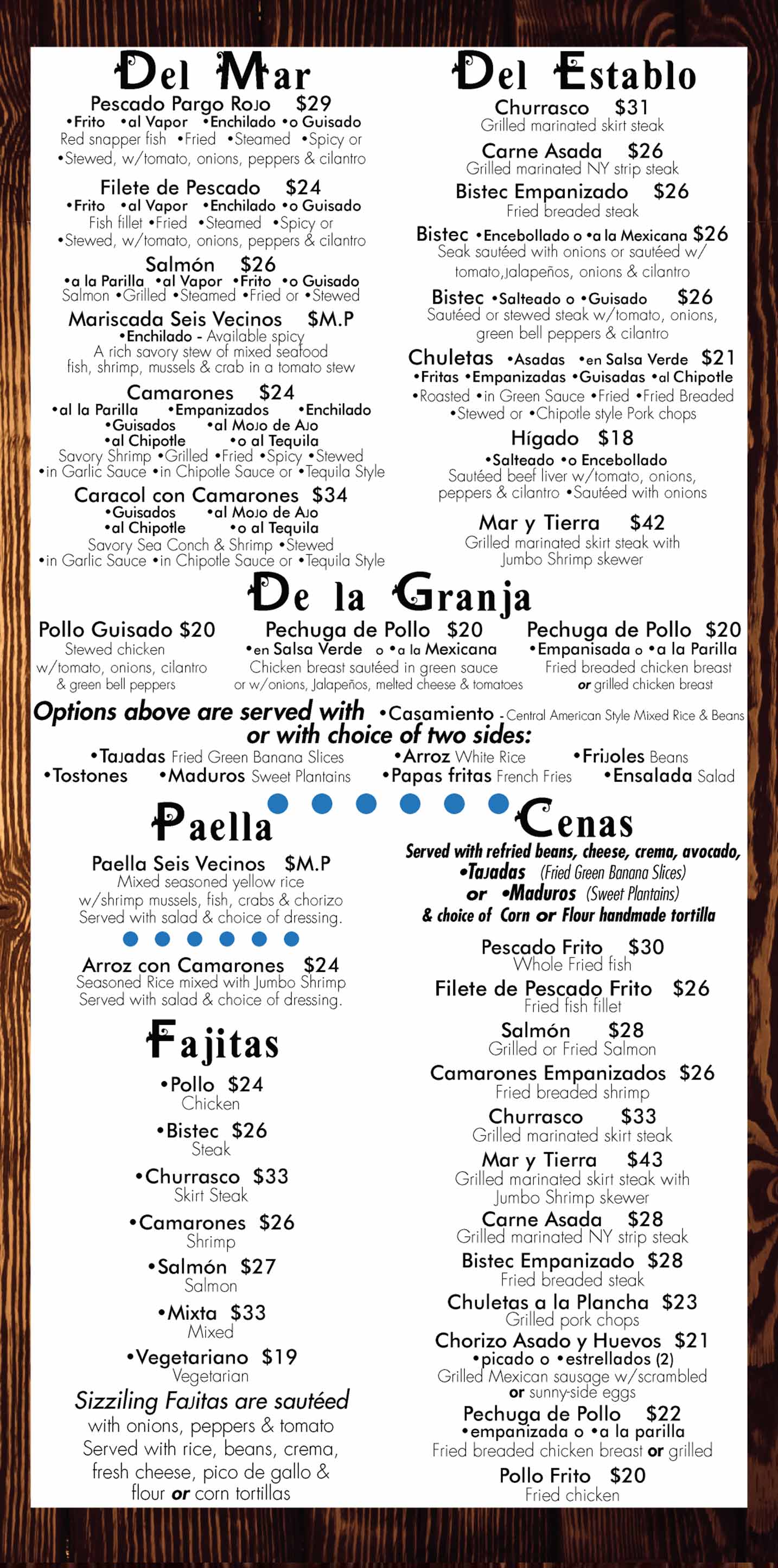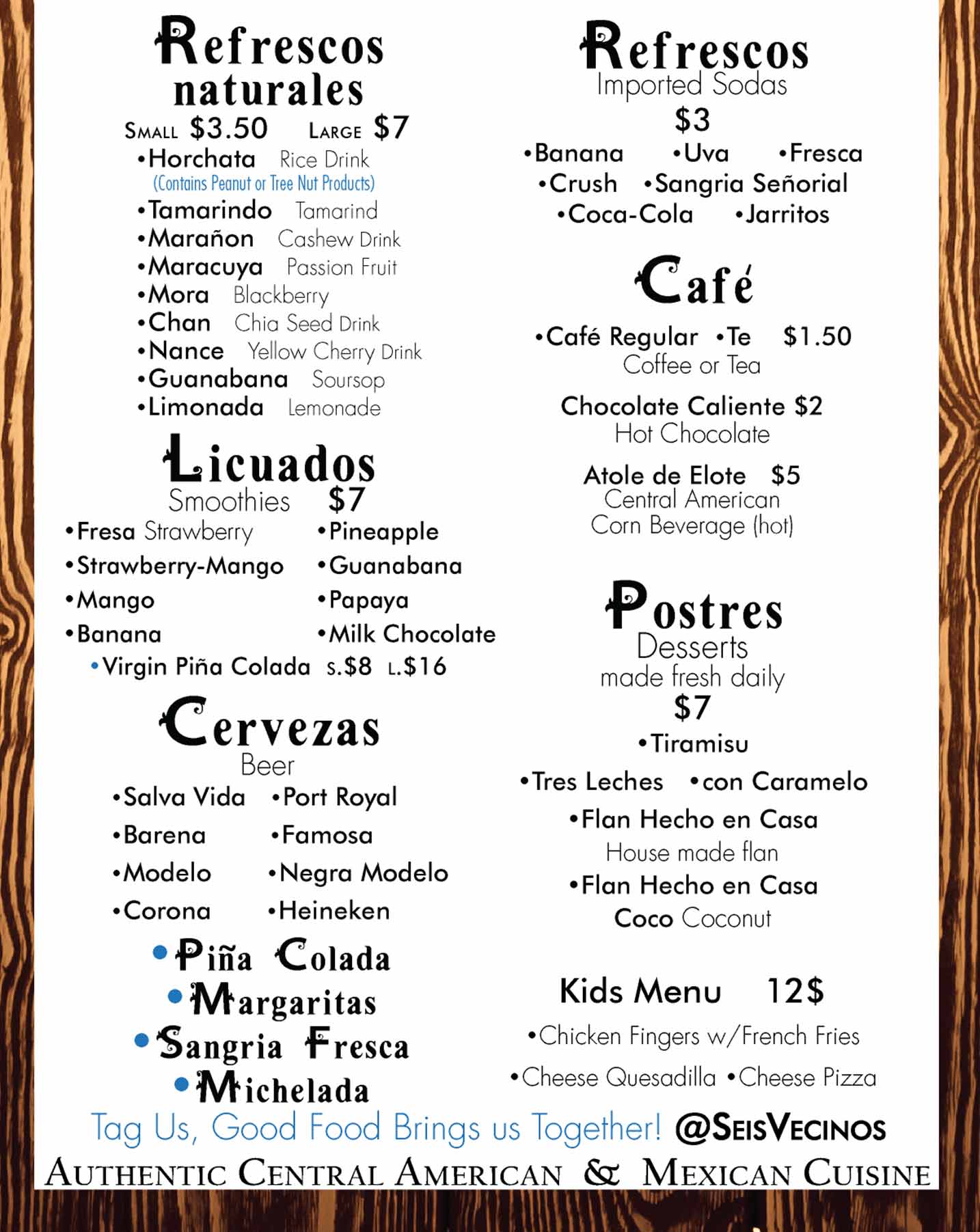Menu page and website format is always being renovated and updated to accommodate all of our customers. Please kindly provide us with any feedback to our email or call us directly for any corrections to best provide everyone. Equality for all - Happy Eating info@seisvecinos.com